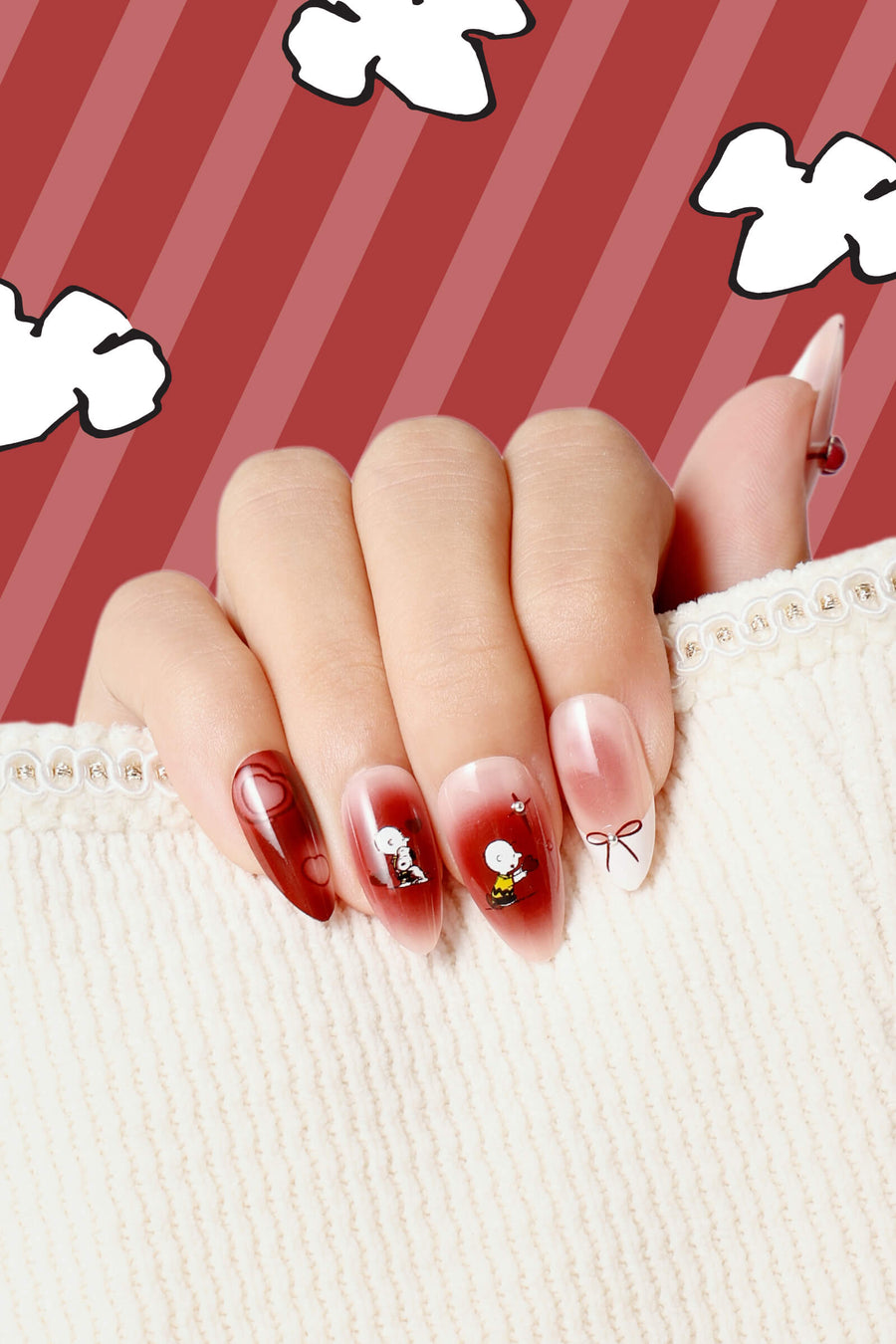 HEARTS OF SNOOPY- ALMOND PRESS-ON NAILS