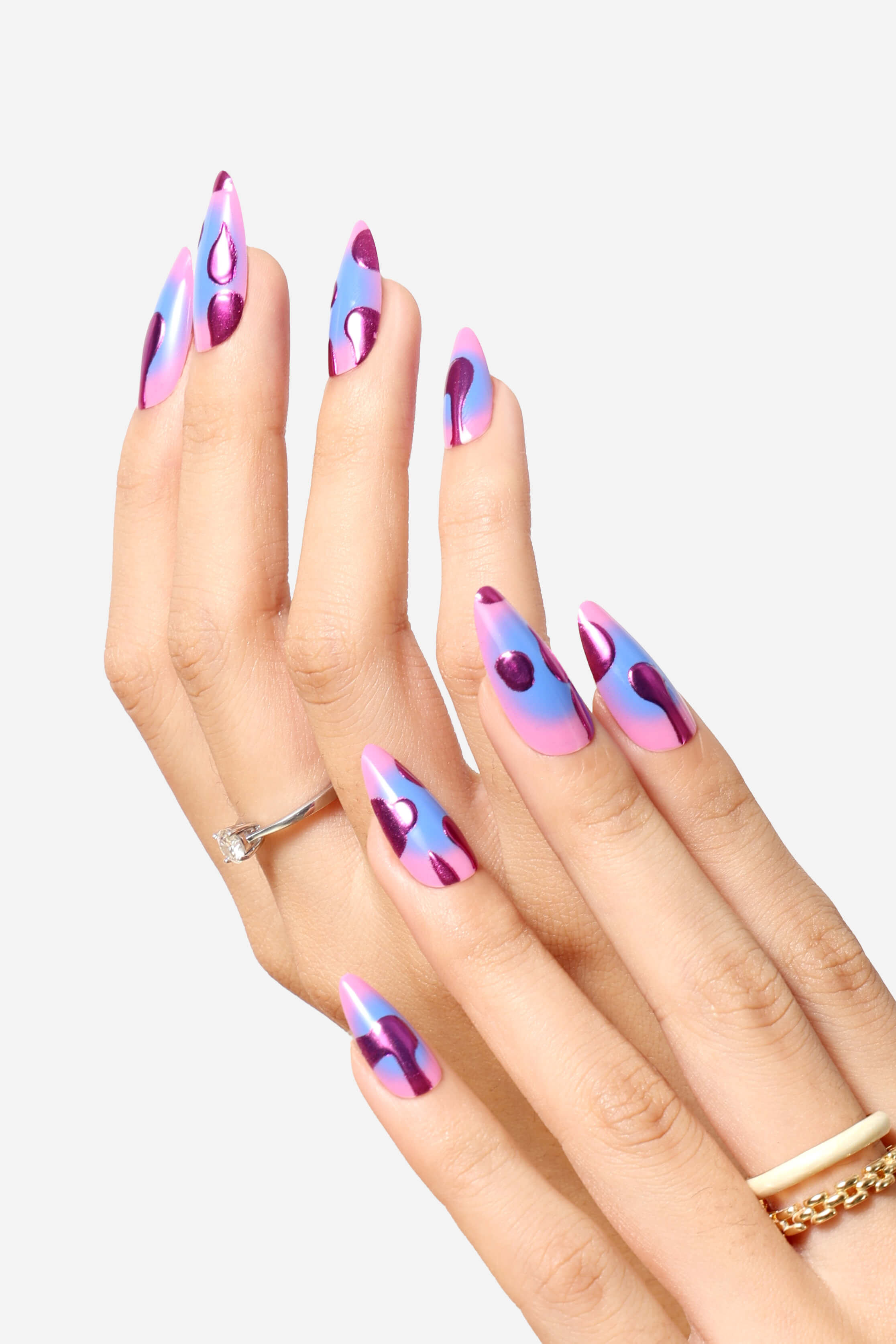 A charming set of reusable press-on nails feature playful designs.